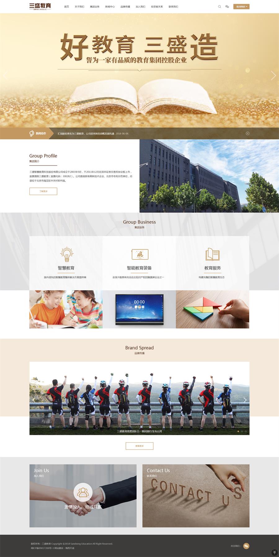 三盛智慧教育科技股份有限公司成立于2003年9月,于2011年12月在深圳證券交易所創(chuàng)業(yè)板上市,股票簡稱三盛教育(股票代碼:300282)。公司是國家級高新技術企業(yè)、北京市專利示范單位,總部位于北京市海淀區(qū)中關村軟件園。