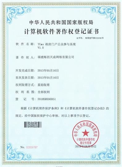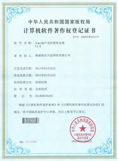 各項(xiàng)證書的取得有利于保護(hù)公司的知識(shí)產(chǎn)權(quán),提高品牌知名度,保持技術(shù)領(lǐng)先優(yōu)勢(shì),從而提升公司的核心競(jìng)爭(zhēng)力,對(duì)公司產(chǎn)品推廣和市場(chǎng)拓展產(chǎn)生積極的影響。通過天成人的不懈努力,業(yè)務(wù)發(fā)展蒸蒸日上,技術(shù)一直處于領(lǐng)先;這不僅是公司取得的成就,更重要是我們的技術(shù)在一步步向上發(fā)展,公司實(shí)力在不斷的進(jìn)步和增強(qiáng)。軟著證書是公司技術(shù)團(tuán)隊(duì)的心血,凝聚了先進(jìn)的技術(shù)力量,使海西天成走向更強(qiáng)、更遠(yuǎn)。