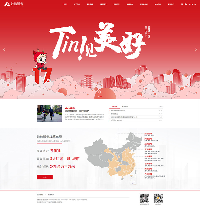 為迎合上市,融信服務(wù)官網(wǎng)(www.rxswy.com)全新改版升級上線,官網(wǎng)通過中、英、繁三種語言向國際資本市場全方位介紹融信服務(wù)的理念、多元布局等;網(wǎng)站采用響應(yīng)式設(shè)計規(guī)劃,自適應(yīng)用戶不同的瀏覽終端。