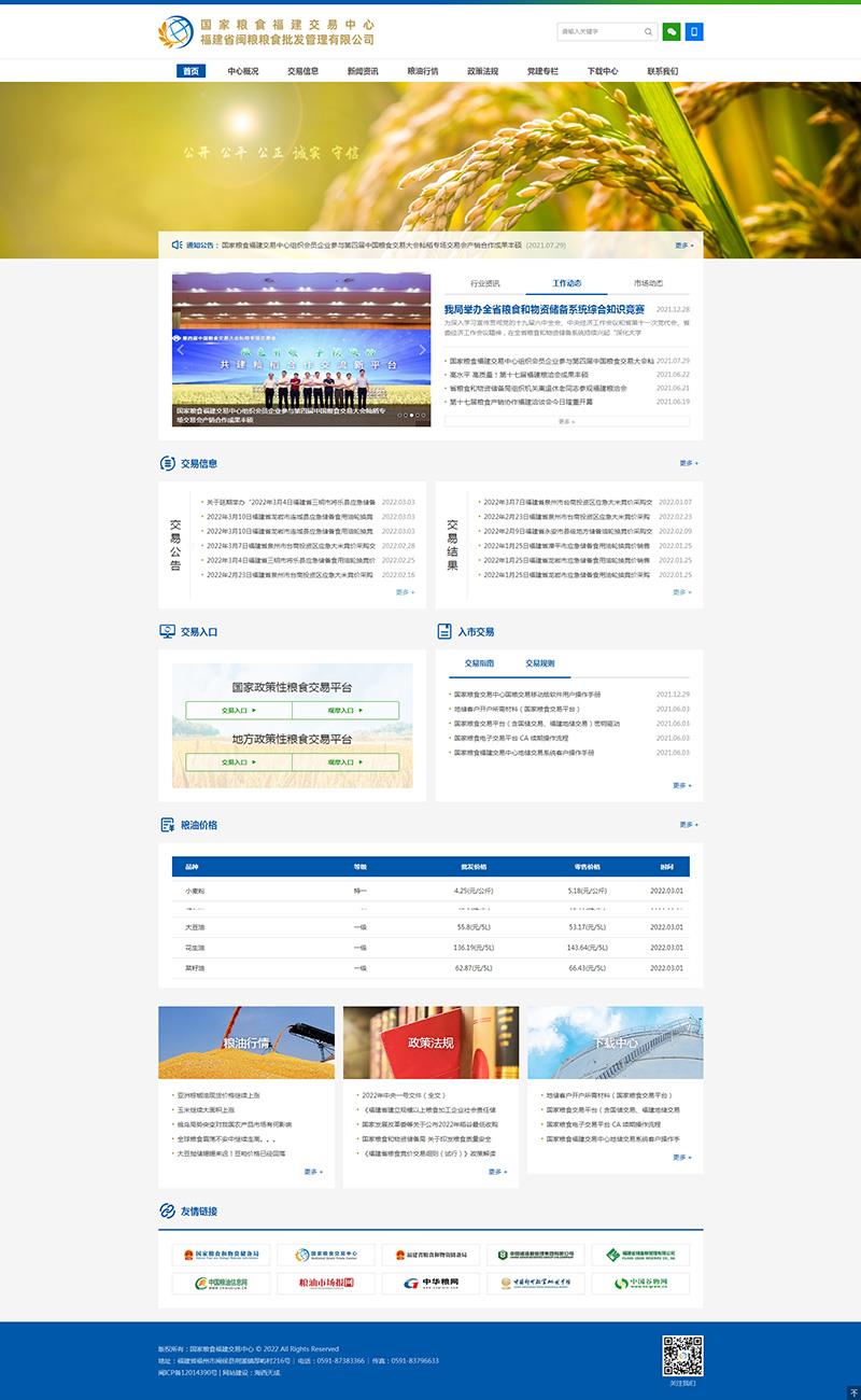 近日,由海西天成承建的國(guó)家糧食福建交易中心門(mén)戶網(wǎng)站正式上線,網(wǎng)站以全新的互聯(lián)網(wǎng)形象對(duì)公眾展示,網(wǎng)址為www.fjgrainmarket.com